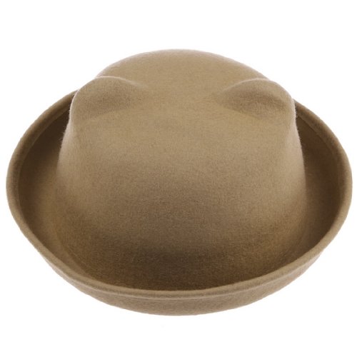 Y-BOA 1pc Chapeau Melon Rétro Style Britannique Vintage Charlie Chaplin Chat d'Oreille en Laine Vogue Collocation Unisexe/Enfant (Kaki)